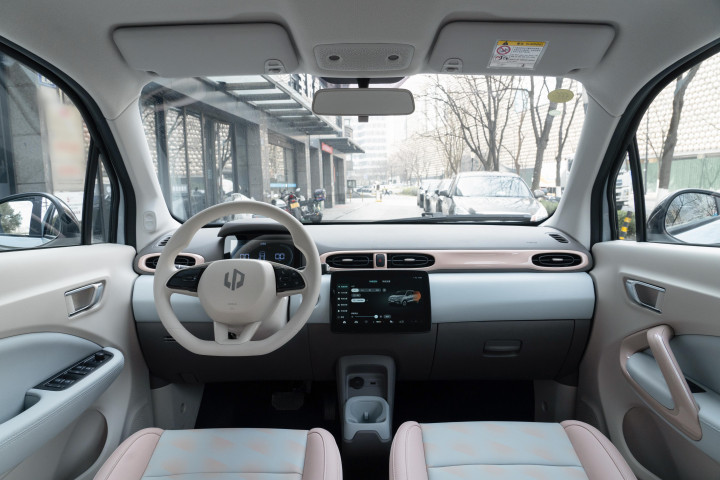 有朋友说像 "精致版老头乐",但实车质感完全不一样:车身接缝很均匀,门把手采用常规设计,使用起来顺手自然,关门时的厚重感比同价位的五菱缤果扎实。最关键的是小巧灵活,我们小区的老车位特别窄,同事的 SUV 每次停车都要倒三五次,我这 4.8 米的最小转弯半径,一把就能扎进去,新手也能当老司机。